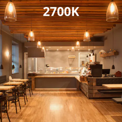 Mit einem Wert von 2.700 K spendet diese LED Licht in der Farbtemperatur extra Warmweiß. Die Lichtfarbe zeichnet sich durch einen hohen Rot-Anteil aus und erzeugt eine warme, komfortable Atmosphäre. Daher wird sie gern im Gastronomie- und Hotelbereich eingesetzt, um Gästen einen angenehmen Aufenthalt mit Wohlfühl-Faktor zu bieten.