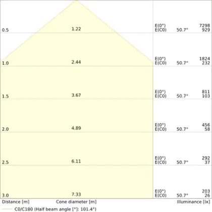 Der Abstrahlwinkel bezeichnet den Winkel, in dem das Licht aus der Lichtquelle ausgestrahlt wird. Er wird in Grad (D) angegeben. Je geringer die Gradzahl des Abstrahlwinkels ist, desto kleiner ist auch der Durchmesser des Lichtkegels, den die Lichtquelle produziert.
