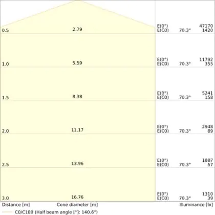 Der Abstrahlwinkel bezeichnet den Winkel, in dem das Licht aus der Lichtquelle ausgestrahlt wird. Er wird in Grad (D) angegeben. Je geringer die Gradzahl des Abstrahlwinkels ist, desto kleiner ist auch der Durchmesser des Lichtkegels, den die Lichtquelle produziert.