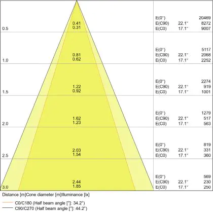 Der Abstrahlwinkel bezeichnet den Winkel, in dem das Licht aus der Lichtquelle ausgestrahlt wird. Er wird in Grad (D) angegeben. Je geringer die Gradzahl des Abstrahlwinkels ist, desto kleiner ist auch der Durchmesser des Lichtkegels, den die Lichtquelle produziert.