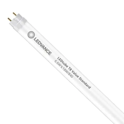 Bei der Mehrfachpackung 10x Ledvance LED Röhre T8 Value (EM/Mains) Standard Output 6.6W 800lm - 840 | 60cm - Ersatz Für 18W handelt es sich um eine energieeffiziente LED-Röhre. Sie ersetzt Ihre konventionelle Leuchtstoffröhre mit 18W. Die Röhre ist 604 mm lang und hat die Farbtemperatur 4000K - Kaltweiss. Die durchschnittliche Lebensdauer der LED-Röhre beläuft sich auf 30000 Stunden. Wir bieten Ihnen für dieses Produkt eine Garantie von 3 Jahre an.