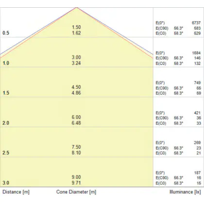 Der Abstrahlwinkel bezeichnet den Winkel, in dem das Licht aus der Lichtquelle ausgestrahlt wird. Er wird in Grad (D) angegeben. Je geringer die Gradzahl des Abstrahlwinkels ist, desto kleiner ist auch der Durchmesser des Lichtkegels, den die Lichtquelle produziert.