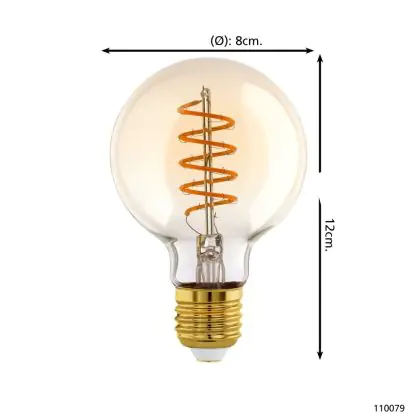 Description Eglo LED Globe E27 Filament Ambre 4W 245lm - 820 | Dimmable - Remplacement 25W