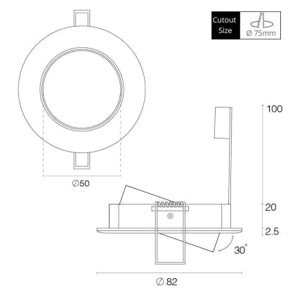 Halogen spot 51mm tiltable Blanc est un spot LED encastrable. Ce luminaire est conçu pour un éclairage d’accentuation pour un usage domestique ou bien professionnel. Fixture Retrofit, ce spot LED Lumi Parts en Aluminium a besoin d’une place nécessaire de 75mm de largeur et mm de profondeur. Ce luminaire est compatible avec une ampoule GU10, il est important de faire attention si vous décidez de changer d’ampoule.