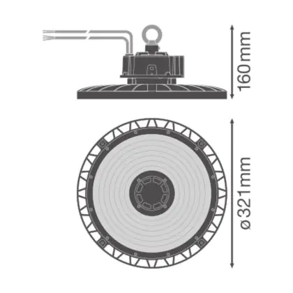 Le Ledvance Highbay LED Gen 5 Aluminium Noir 150W 26250lm 110D - 865 | IP66 - 1-10V Dimmable est un puissant luminaire qui est très souvent utilisé pour l’éclairage industriel. Ce luminaire suspendu propage un puissant flux lumineux de 26250 Lm et offrant un excellent rendu de couleurs par rapport aux luminaires traditionnels. Cet high-bay LED est capable de résister aux différentes températures extrêmes que l’on peut retrouver dans les hangars, entrepôts ou autres halls industriels. La technologie LED Intégré sur ce luminaire permet de faire d’importantes économies d’énergie. En effet, l’high-bay propose une puissance de 150W pour un équivalent de 250W pour les appareils classiques et dispose d’une durée de vie pouvant aller jusqu’à 120000 heures.