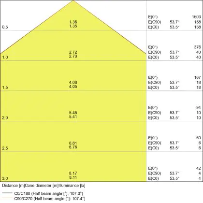 - Angle de diffusion: 120 °