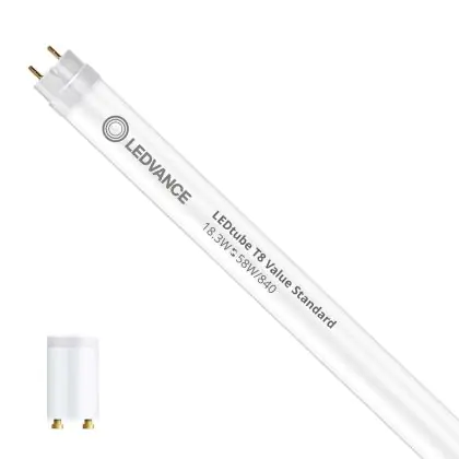 Ce tube LED Ledvance tube LED 150cm | 4000K 18.3W - Value est l’un des produits les plus éconergétiques en remplacement des tubes T8 classiques. Avec ce tube LED vous êtes donc assuré de sa qualité. Avec une puissance de seulement 18.3 W, ce tube LED a la même intensité lumineuse qu’un tube classique qui consomme 58 W. P>