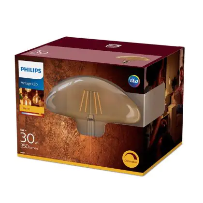 Cette ampoule Philips Classic LED E27 Mushroom 200mm Filament Dorée 5.5W 470lm - 818 | Dimmable - Remplacement 40W est l’alternative idéale pour la remplacement de votre ampoule classique de 40 W. La technologie LED intégrée vous offrira de nombreux avantages. Les ampoules à incandescence traditionnelles ont une durée de vie limitée. Cette alternative LED vous permettra de profiter d’un éclairage durable et fiable.