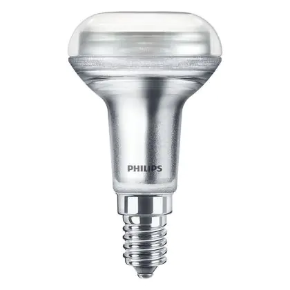 La lampe LED Philips Corepro LED Spot E14 R50 4.3W 320lm 36D - 827 Blanc Très Chaud | Dimmable - Équivalent 60W avec culot E14 (Ampoule à vis petit culot) est le remplacement idéal des lampes à incandescence et halogènes classiques. En raison de la faible consommation d'énergie, vous économisez considérablement sur vos coûts d'énergie. Les lampes à LED Philips n’utilisent qu’une petite partie de la puissance (4.3 W) que les lampes à incandescence et halogènes classiques (60 W). Les lampes à LED ont une excellente classe énergétique F, ce qui signifie qu'elles sont très écologiques et peuvent être recyclées après utilisation. En raison de leur durée de vie considérable de 15000 heures, vous n’aurez pas à les changer de si tôt.
