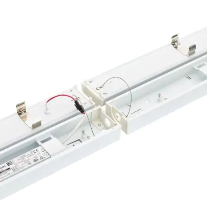 La réglette LED, Philips Réglette LED CoreLine Blanc 29.5W 4100lm - 865 Lumière Du Jour |120cm - - Remplacement 2x36W est conçue pour remplacer les réglettes TL-D traditionnelles et permettant d’économiser jusqu’à 50% d’énergie. Très souvent utilisé pour l’éclairage d’entrepôts, d’usines, de parking et d’autres grands espaces extérieurs. Très simple d’installation, cette réglette de peut se fixer au plafond et au mur et projette 6500K - Lumière du Jour, comme couleur de lumière. La Philips Réglette LED CoreLine Blanc 29.5W 4100lm - 865 Lumière Du Jour |120cm - - Remplacement 2x36W dispose d’un indice de protection IP20 à l’eau et la poussière et d’une résistance aux chocs IK04.