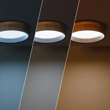 Plafonnier Ronde Bois Métal Noir 15W 1000lm - 830-840-860 CCT