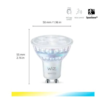 Description WiZ Smart Spot LED GU10 PAR16 5W 400lm 36D | Meilleur Rendu De Couleur - Dimmable - Remplacement 50W